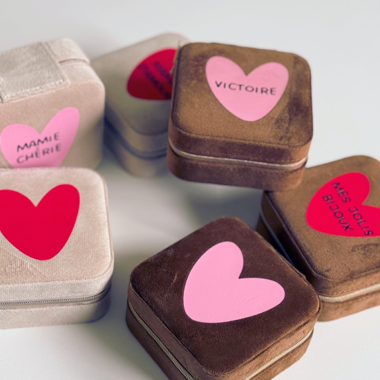 Personnalisation avec un gros coeur rouge, beige ou rose et un texte au choix si vous le souhaitez