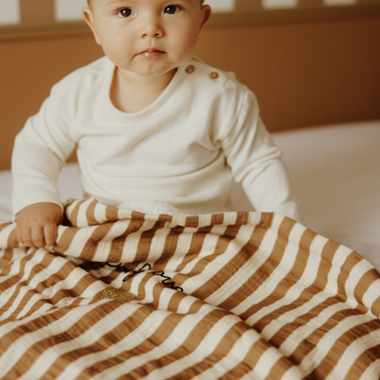 Craquez pour la douceur de nos couvertures pilou avec une face en gaze de coton et l'autre en moumoute !